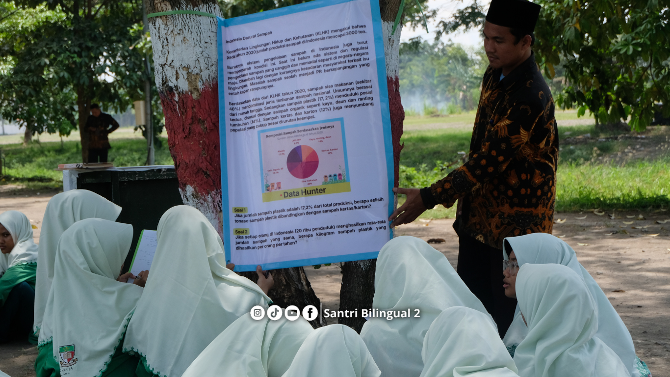 Inovasi pembelajaran berbasis literasi numerasi kembali dihadirkan SMP Bilingual Terpadu 2 melalui kegiatan Data Hunter, salah satu cabang lomba dalam Bilie Numeracy Festival. Kegiatan ini berlangsung di Lapangan Mahsyar Pesantren Modern Al-Amanah pada 1 Oktober 2025 dan diikuti oleh perwakilan santri dari setiap kelas.