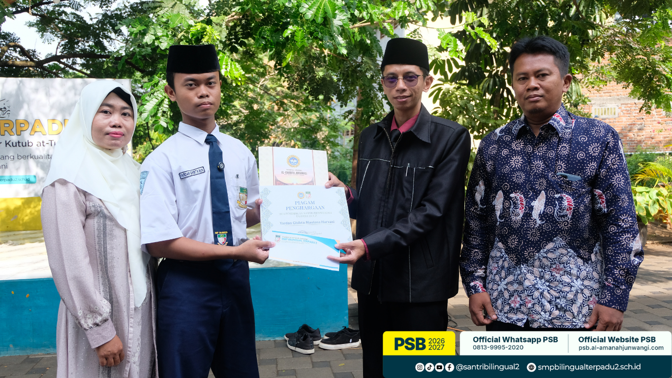 Yardan Ghibta, seorang santri Pesantren Modern Al Amanah, berhasil mengkhatamkan 30 juz Al-Qur’an dalam kurun waktu kurang dari tiga tahun. Tepat pada 20 Oktober 2025, menjelang perayaan hari santri. Di hadapan seluruh santri SMP Bilingual Terpadu 2 beserta asatidz dan ustadzah, serta ayahanda dan ibunda tercinta yang hadir secara langsung, Yardan menyetorkan hafalan juz 30 di halaman Al Hikmah.