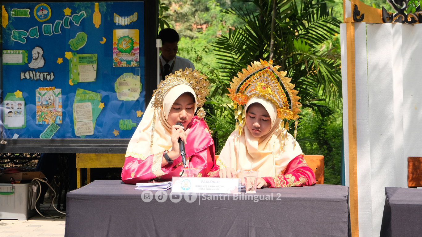 Suasana halaman Al-Hikmah SMP Bilingual Terpadu 2 pada Senin, 29 September 2025, tampak semarak dan penuh antusiasme. Seluruh santri, ustaz, dan ustazah berkumpul untuk menyaksikan kegiatan kampanye dan debat calon Ketua dan Wakil Ketua OSIS masa bakti 2025/2026.